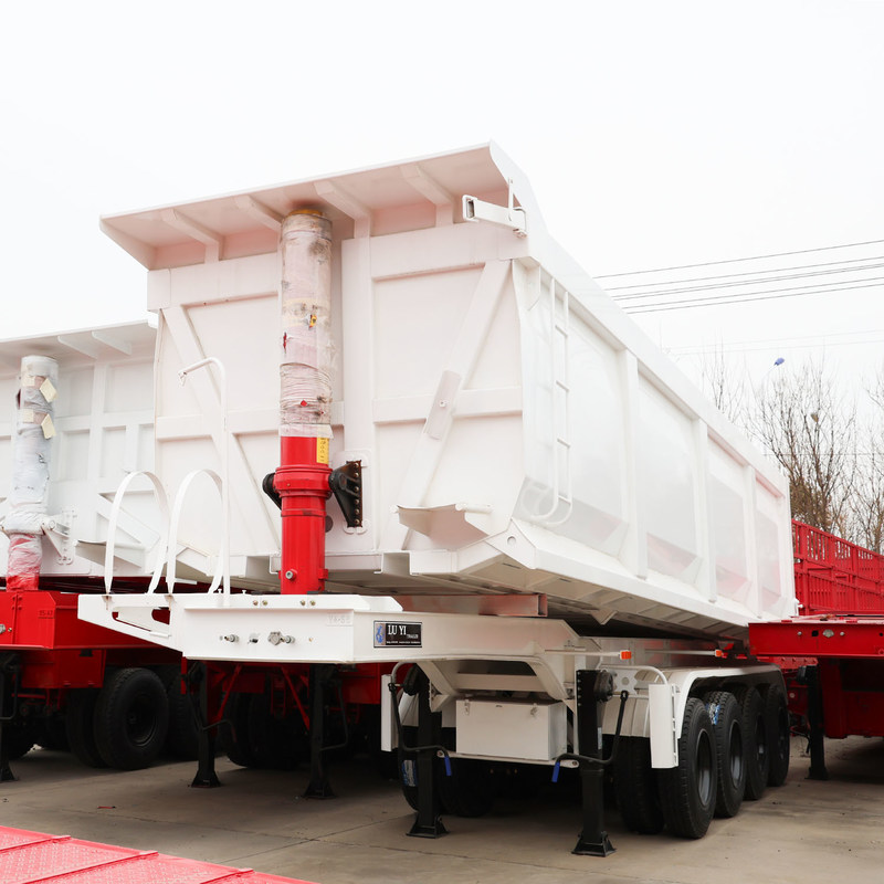 Die Dump-Anhänger haben die Fähigkeit, das Material automatisch in einem bestimmten Winkel abzuwerfen, was Zeit und Arbeit erheblich spart, den Transportzyklus verkürzt, die Produktionseffizienz verbessert,und reduziert die TransportkostenDer Wagen kann nach hinten oder seitlich geneigt werden.