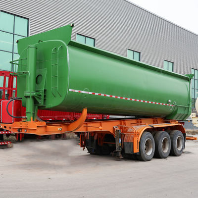 Die Dump-Anhänger haben die Fähigkeit, das Material automatisch in einem bestimmten Winkel abzuwerfen, was Zeit und Arbeit erheblich spart, den Transportzyklus verkürzt, die Produktionseffizienz verbessert,und reduziert die TransportkostenDer Wagen kann nach hinten oder seitlich geneigt werden.